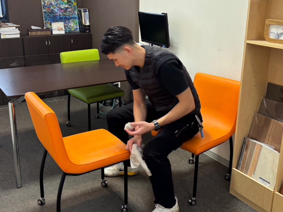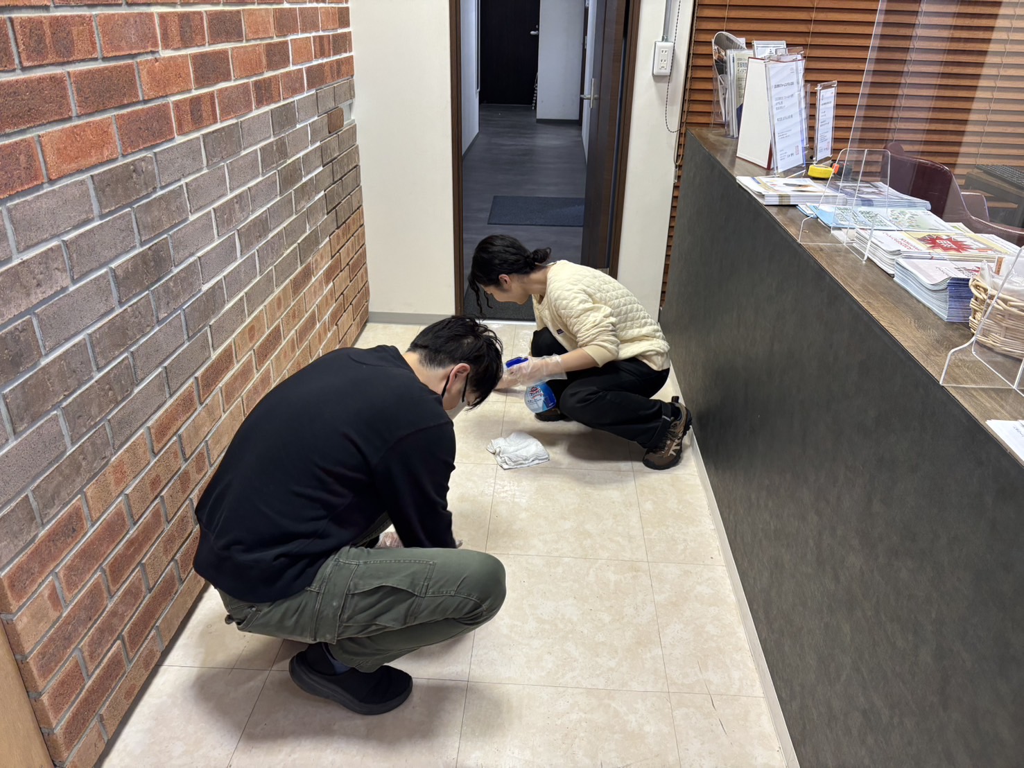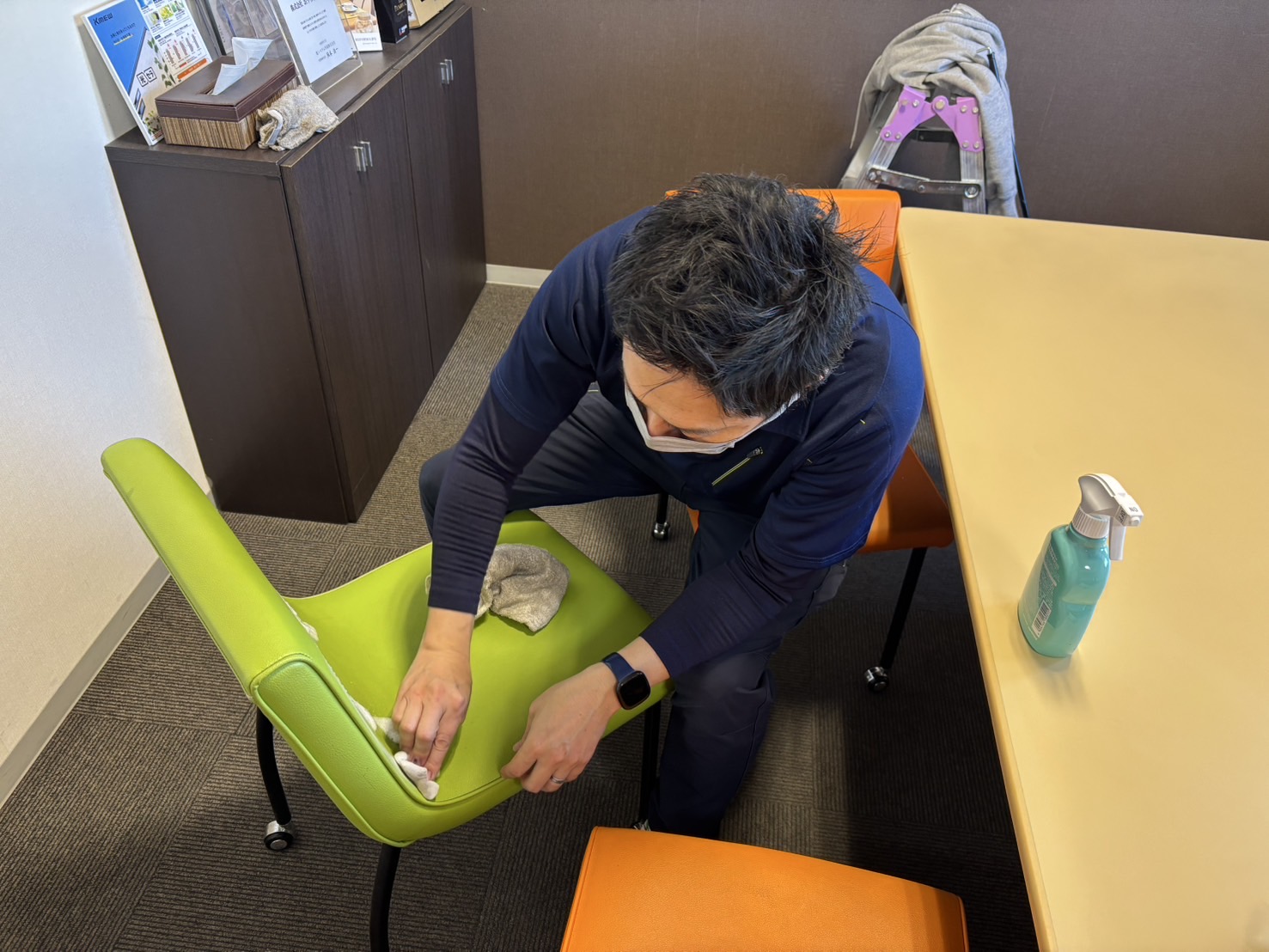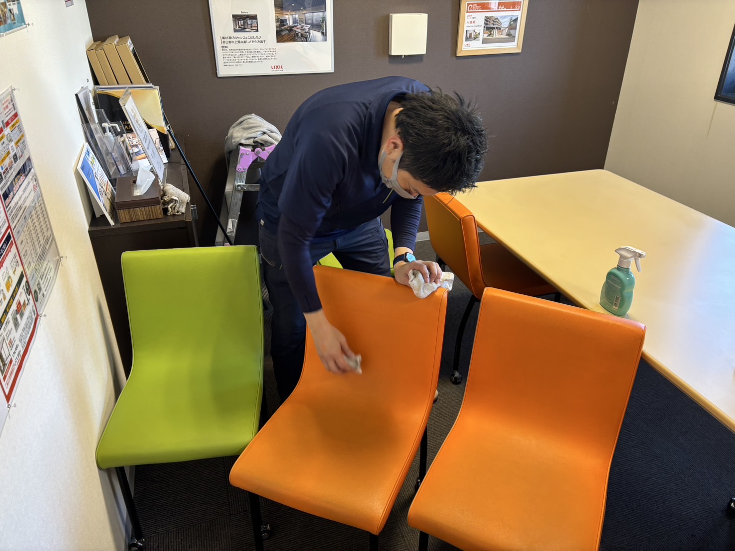 お客様をお通しする机やいすはもちろん、窓や床まで、隅々しっかり磨きました🪟✨