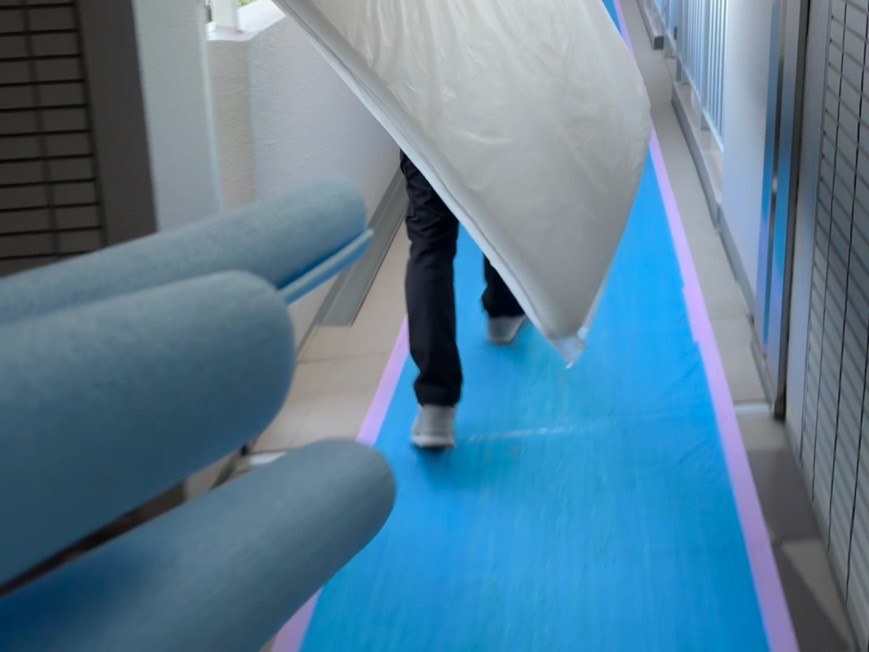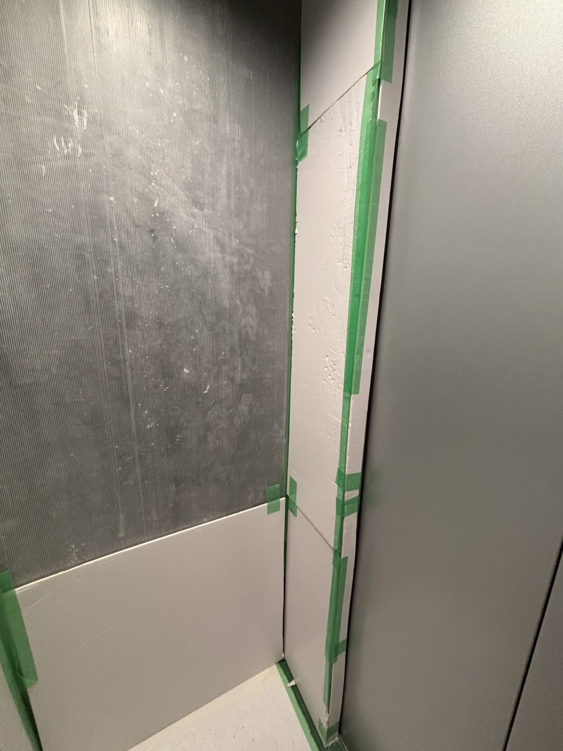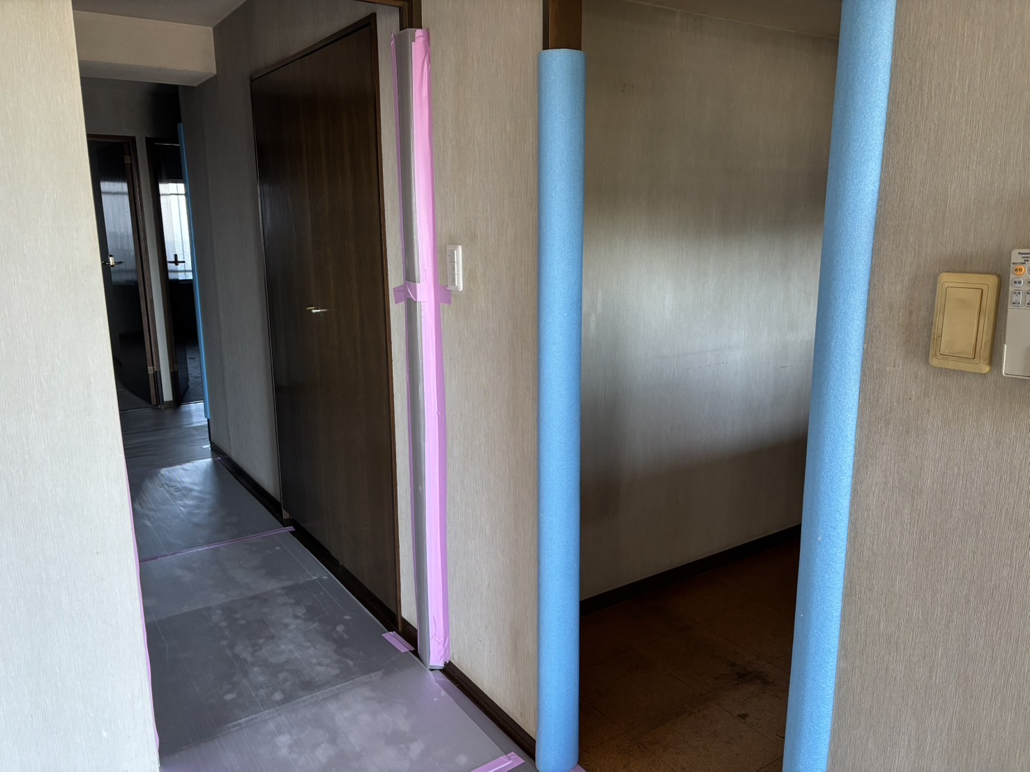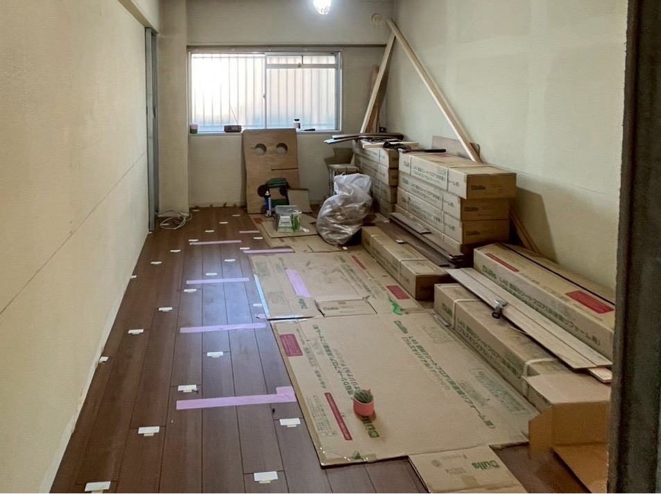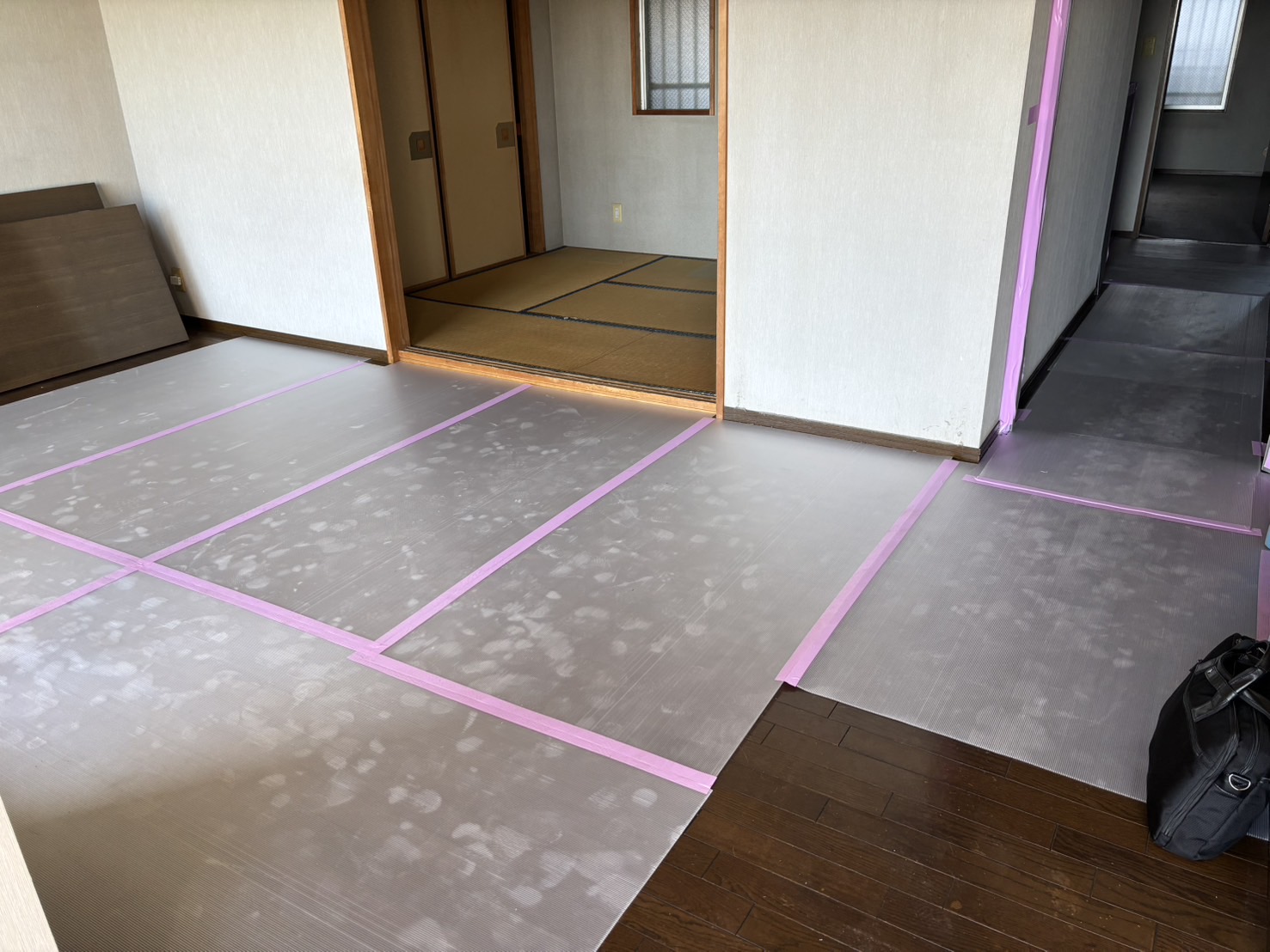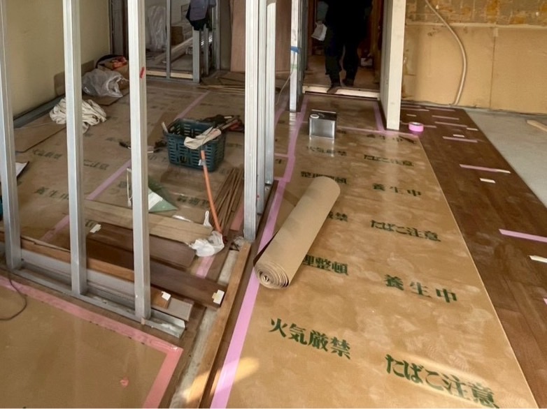 工事中に 床や壁、設備などに傷や汚れが付かないように保護する作業 のこと🛡️