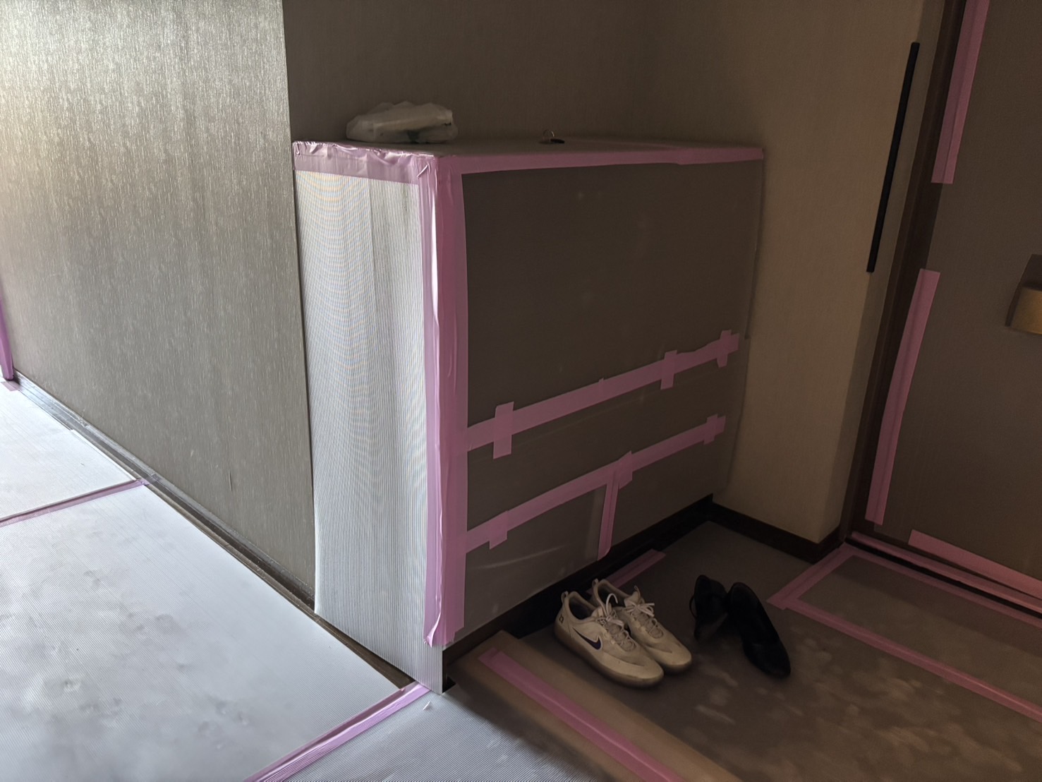 床や扉の枠など、細かい部分までしっかり養生しました😊