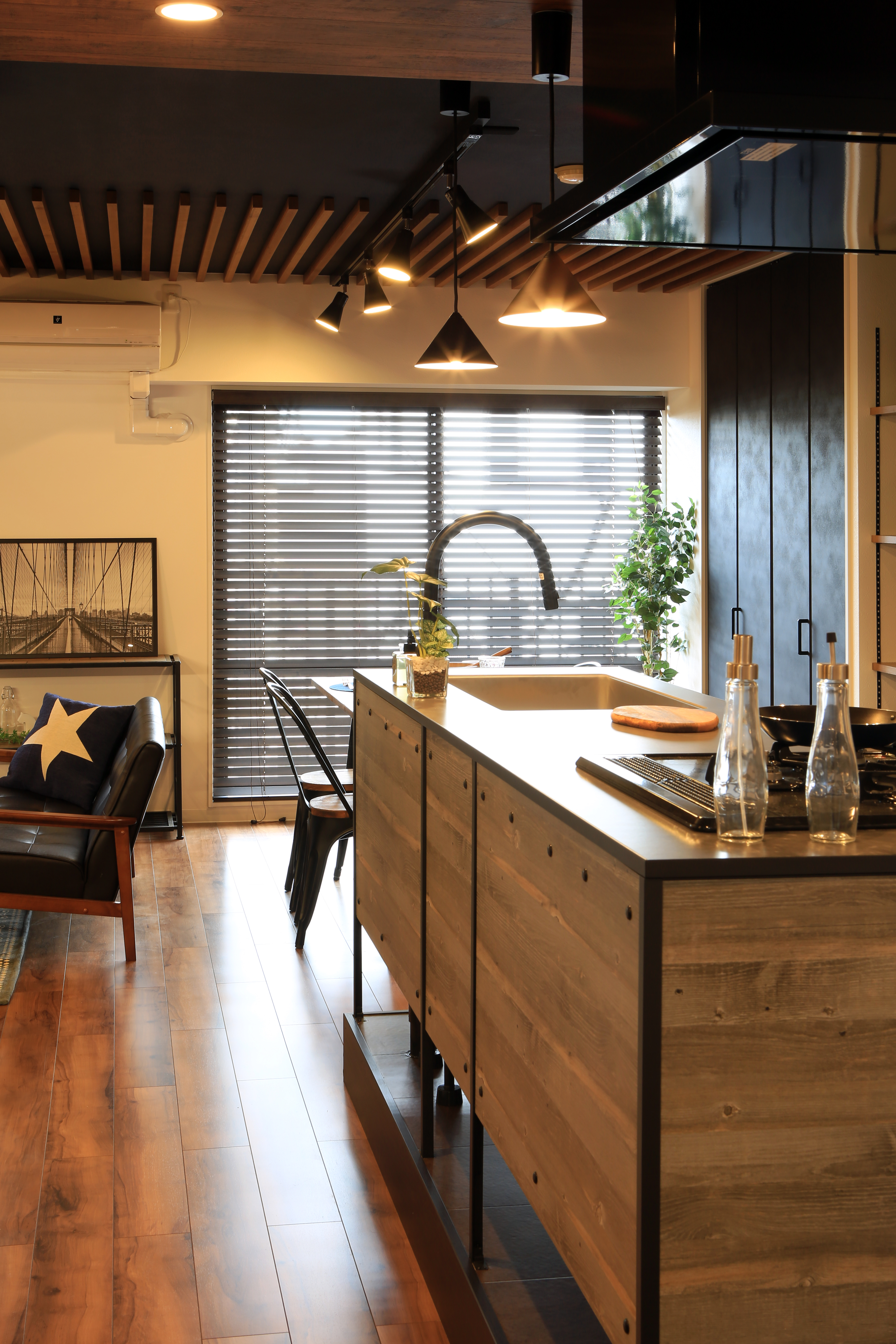木とブラックアイアンのキッチンリノベ